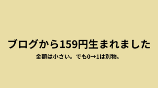 ブログを始めて初めてのアフェリエイト収益159円が発生。金額は小さいけど、0→1の嬉しさは別格でした。ブログ収益がどうやって生まれるのか、初心者目線で書いています。